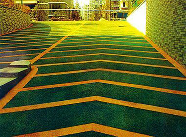 -  4. 中涂防滑層:  批刮第二遍環氧砂漿中涂(80-120目)同時進行防滑拋沙施工(20-40目),使防滑粗砂能與中涂層附著。  目的:使地面平整、無裂縫、增強地面抗壓、抗沖擊強度。并增加其摩擦度。   5. 面涂層:  將第一遍環氧樹脂面漆涂刷至防滑中涂砂漿表層,硬化12小時后涂刷第二遍環氧樹脂漆,以達到客戶最終所需的要求。 面涂施工:  目的:滿足使用要求,表達產品效果。 材料:環氧樹脂面涂材料。  施工工具:滾刷、鏝刀、攪拌器,容器等。  施工方法:將面涂材料按配比充分混合攪拌,平整均勻涂布于中涂砂漿層,12小時后表干。