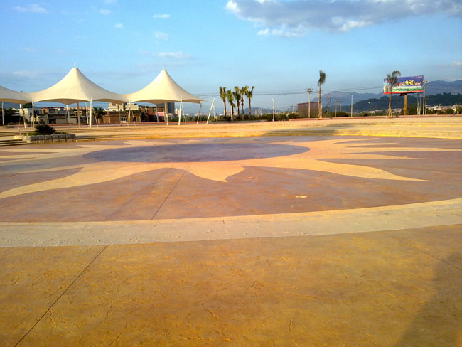 近年來,中國裝飾砼的發展速度較為迅速,其中彩色路面磚最為典型。但由于彩色路面磚等預制裝飾砼產品用于地面設施存在著設計與施工上的諸多不利因素,如路面是分層處理的,產品的實用性能(包括強度、耐磨性等)指標不高,圖形不豐富,色彩不耐久等,事實上它已不能適應日益提高的環境質量要求。地坪有廣義和狹義之分,廣義上的地坪是指各種地面的統稱,狹義地坪則是指通過一些工具及材料使地面呈現出良好的裝飾效果。