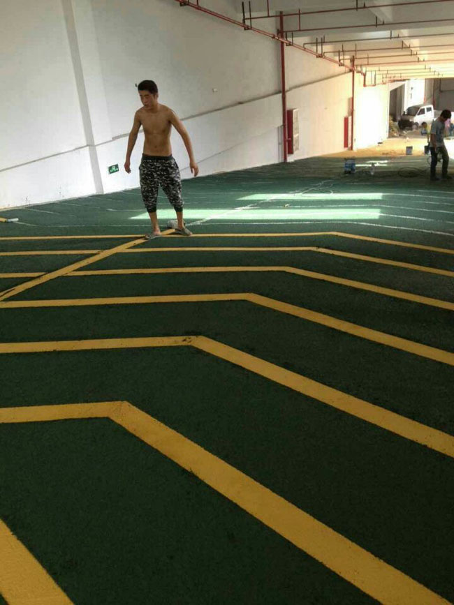 環氧樹脂防滑坡道地坪施工方案 1. 地面清潔 目的:將現防滑坡道地面,整體打磨,掃除地面表面的浮塵,并清除地表面之油漬,將已損壞地面鏟除處理。 施工工具:打磨機。手持電動打磨機。 施工方法:打磨機打磨 地面修補處理: 目的:將地表面雜質清除干凈,,增強底涂與地面的附著力,對有裂紋的地坪進行開槽處理,并灌注環氧樹脂材料,干固后進行打磨使之平整。對研磨后深度仍然超過1.5毫米以上的凹坑采用原子灰與環氧樹脂調和物進行修補平整。油污用稀釋劑清洗干凈涼干再涂刷底漆。 施工工具:強力研磨機、角向磨光機、鏟刀等。 施工方法:使用強力研磨機、鏟刀清除浮漿,角磨機切割開槽、清潔。 2. 底涂施工: 地表面完全清除干凈后,底涂采用滾涂施工,滲透硬化時間為6—8小時,后可進行下一階段施工,使地面與下一步施工的環氧材料有很強的粘著性,并起到封塵的作用。 目的:封閉地面,保證環氧砂漿層與底漆附著力。 3. 環氧砂漿中涂層: 批刮第一遍環氧砂漿中涂(40-70目),增加地面的中層厚度和強度,使地面更平整,硬化時間為12小時。之后可進行下一階段施工 - 4. 中涂防滑層: 批刮第二遍環氧砂漿中涂(80-120目)同時進行防滑拋沙施工(20-40目),使防滑粗砂能與中涂層附著。 目的:使地面平整、無裂縫、增強地面抗壓、抗沖擊強度。并增加其摩擦度。 5. 面涂層: 將第一遍環氧樹脂面漆涂刷至防滑中涂砂漿表層,硬化12小時后涂刷第二遍環氧樹脂漆,以達到客戶最終所需的要求。 面涂施工: 目的:滿足使用要求,表達產品效果。 材料:環氧樹脂面涂材料。 施工工具:滾刷、鏝刀、攪拌器,容器等。 施工方法:將面涂材料按配比充分混合攪拌,平整均勻涂布于中涂砂漿層,12小時后表干。